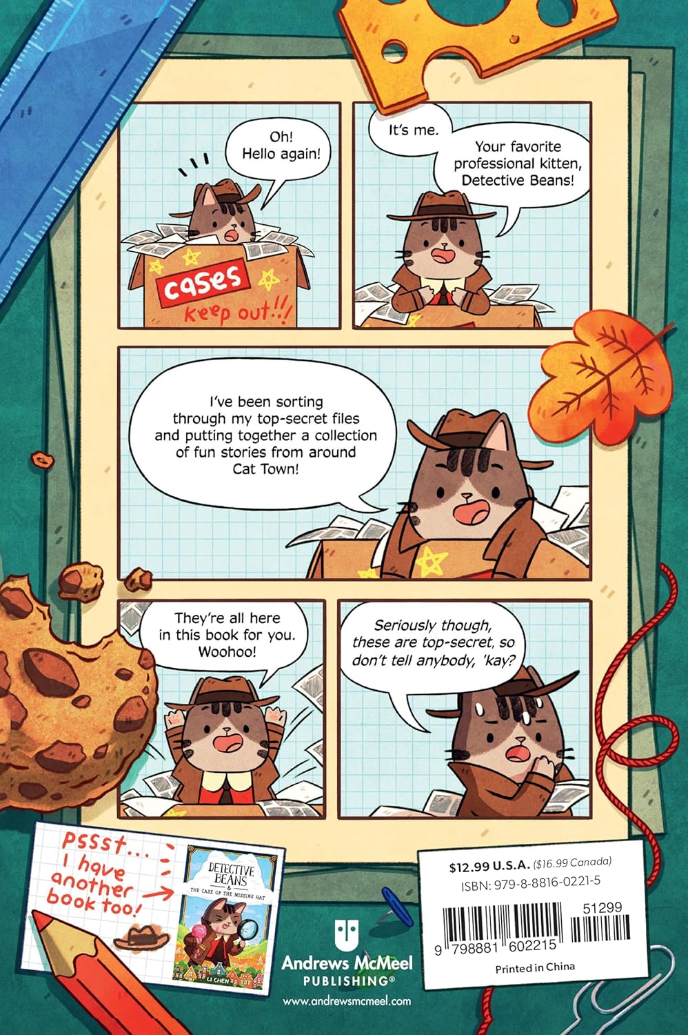 Detective Beans is back on the case! In this series of mysteries and adventures, the world's cutest cat detective comes to the aid of her fellow villagers, searching for a cooky thief (with surprising results!), aiding a deceptive duck in the recovery of lost goods, and even doing his best to help a confused bear prove that the moon is made of cheese. In addition to these small capers, Adventures in Cat Town features behind-the-scenes footage of the crime-solving documentary directed by Beans best friend, Biscuits, as well as comics, stories, and even horoscopes illustrated by Beans himself.