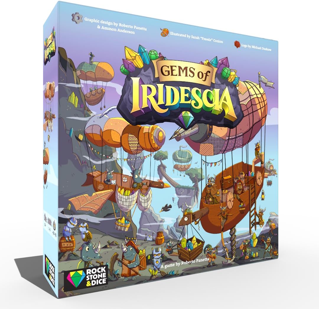 Gems of Iridescia is a worker-placement board game in which players will push their luck as they compete to mine gems, restore ancient relics, and ascend to the throne of a rich gem-filled world. Secret objectives and a variety of ways to score create different paths to victory, making every expedition a unique experience.