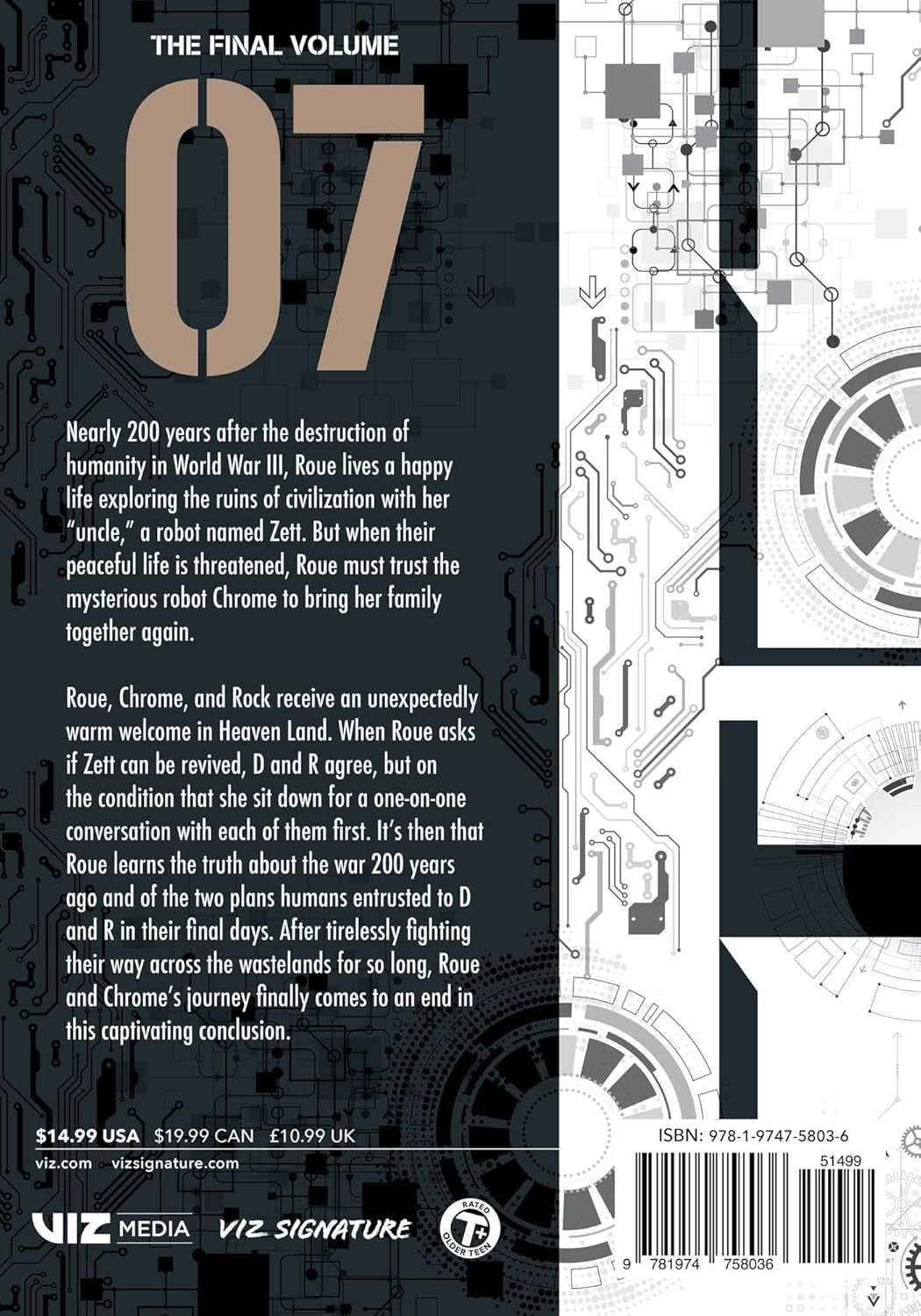 (W) Tsuyoshi Takaki. Roue* Chrome* and Rock receive an unexpectedly warm welcome in Heaven Land. When Roue asks if Zett can be revived* D and R agree* but on the condition that she must sit down for a one-on-one conversation with each of them first. It's then that Roue learns the truth about the war 200 years ago and of the two plans humans entrusted to D and R in their final days. After tirelessly fighting their way across the wastelands for so long* Roue and Chrome's journey finally comes to an end in this captivating conclusion. For older teen audiences.