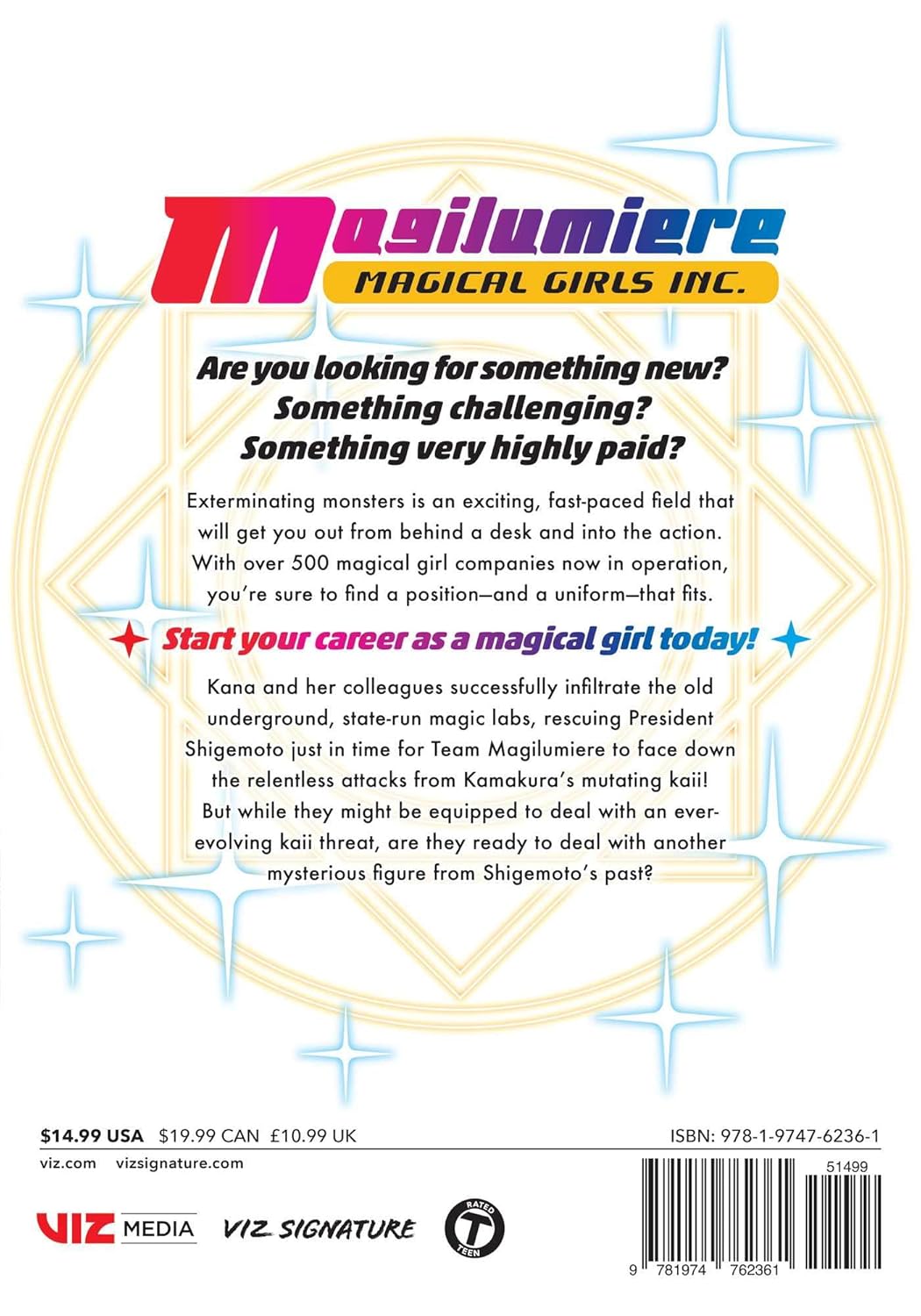 Are you looking for something new? Something challenging? Something very highly paid? Exterminating monsters is an exciting, fast-paced field that will get you out from behind a desk and into the action. With over 500 magical girl companies now in operation, you’re sure to find a position—and a uniform—that fits. Start your career as a magical girl today!