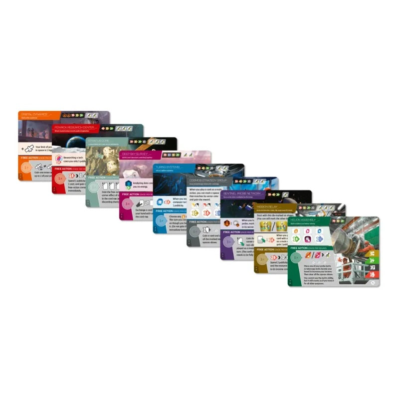 In addition to these organizations, the expansion adds three new alien species, each with their own unique twists, and over forty new project cards inspired by real-world initiatives. These integrate seamlessly into the main deck, providing even greater variety and strategic options.