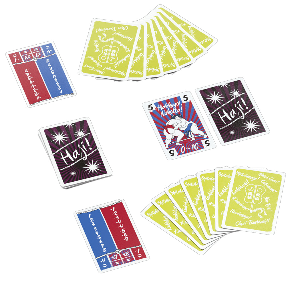 Hakkeyoi, Nokotta! In this 2-4 player hand management game, try to force your opponent to push the balance above 10 or below 0 to achieve a SLAMBO! Stay balanced, or get slammed!