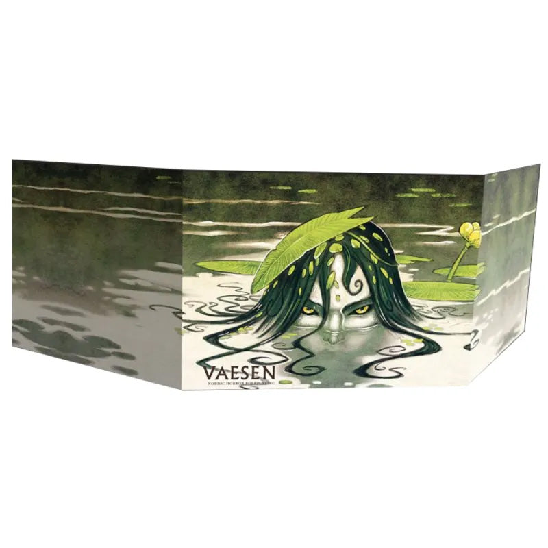 A deluxe Gamemaster's screen in landscape format for the Vaesen Roleplaying Game. It features Johan Egerkrans's art on the outside and a host of useful tables and important information on the inside, while keeping the GM's plans hidden from the eyes of inquisitive players.